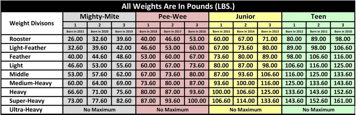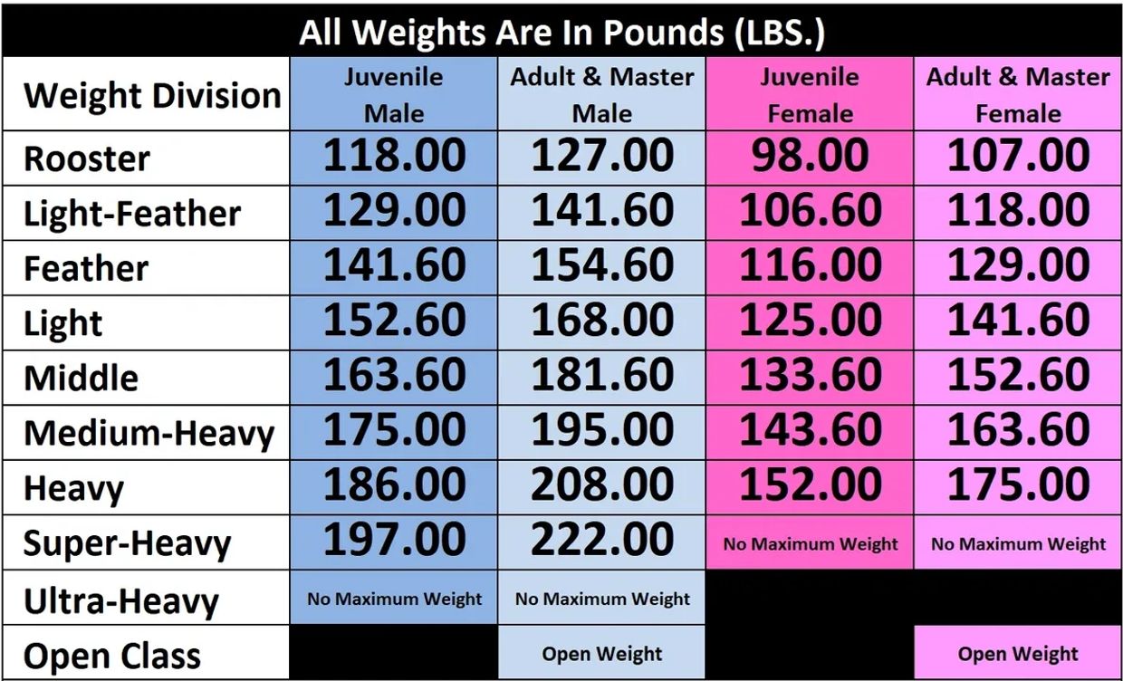 Competitors may weigh in starting at 8:00 AM, regardless of their scheduled competition time. Priority for Early Competitors: From 8:00 AM to 9:30 AM, priority will be given to competitors scheduled to compete between 9:00 AM and 10:00 AM. Other competitors may still weigh in, but they might have to wait until these priority athletes are processed first. Weigh-In Deadline: All competitors MUST complete their weigh-in at least 30 minutes before their scheduled division. For example, if your match is scheduled for 11:00 AM, you must weigh in by 10:30 AM at the latest.